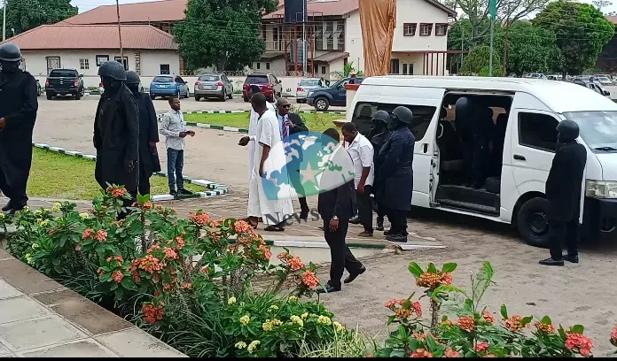The suspects, who were arrested by operatives of the Department of State Services (DSS), arrived at the court premises at about 9 a.m. under heavy security presence.